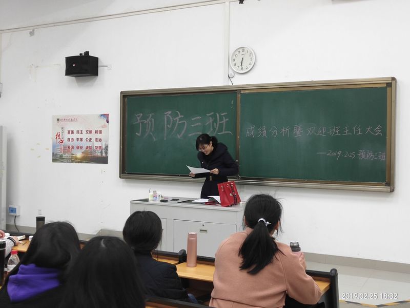 34日至38日,公共卫生与预防医学系20183位兼职班主任利用课余时间给各分管班级召开新学期成绩分析班会,3位兼职班主任在班会上总结并分析了上学期班级期末成绩的总体情况,肯定了班级取得的学业成绩,同时也指出了班级存在的问题和不足。期间,各班级上学期成绩优异的同学做了学习方法的分享。最后,各兼职班主任制定了新学期的学业目标,并鼓励大家共同完成。