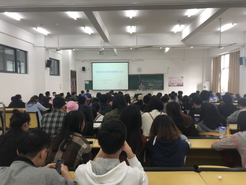 本次讲座的主题是综述论文写法的讲解与指导。江阿沛老师就综述论文的特点、目的、格式以及文献的查找向同学们做出了详细的介绍。讲座期间,江阿沛老师用简明易懂的语言,指导了同学们该如何写好一篇综述论文。此外,江阿沛老师还介绍了多种不同查找文件资料的途径,让同学们对资料的查找有了更多更全面的来源。同学们在聆听讲座的期间都非常专注,认真听取江阿沛老师所讲解的内容,用心做记录。