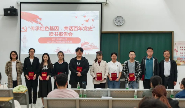 5月26日晚,公共卫生与预防医学部在7栋402举行了以“传承红色基因,共话百年党史”为主题的春季读书报告会。公共卫生与预防医学部主任徐济达、副主任江阿沛以及2020级5名兼职班主任受邀作为评委参加。预防专业2020级全体同学及其他年级部分同学参加。此次读书报告会由田卓伦和王思颖两位同学主持。