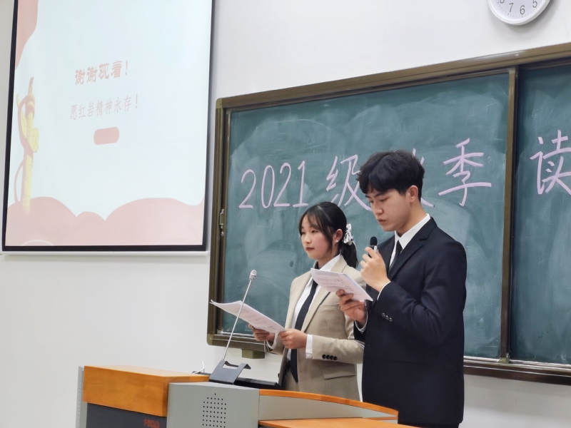 本次报告会中共有9名21级同学与6名20级同学发表了自己对红色书籍的见解与感悟,从多个角度解析红色经典,让经典重焕光彩。同学们汇报的读物有《红色家书》《长津湖》《苦难辉煌》《呐喊》《小兵张嘎》等。活动还增设了有奖竞猜环节,同学们热情高涨,积极参与,踊跃发言。