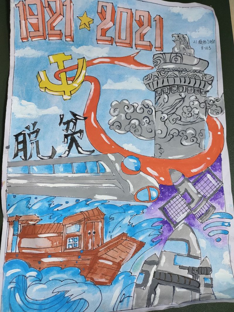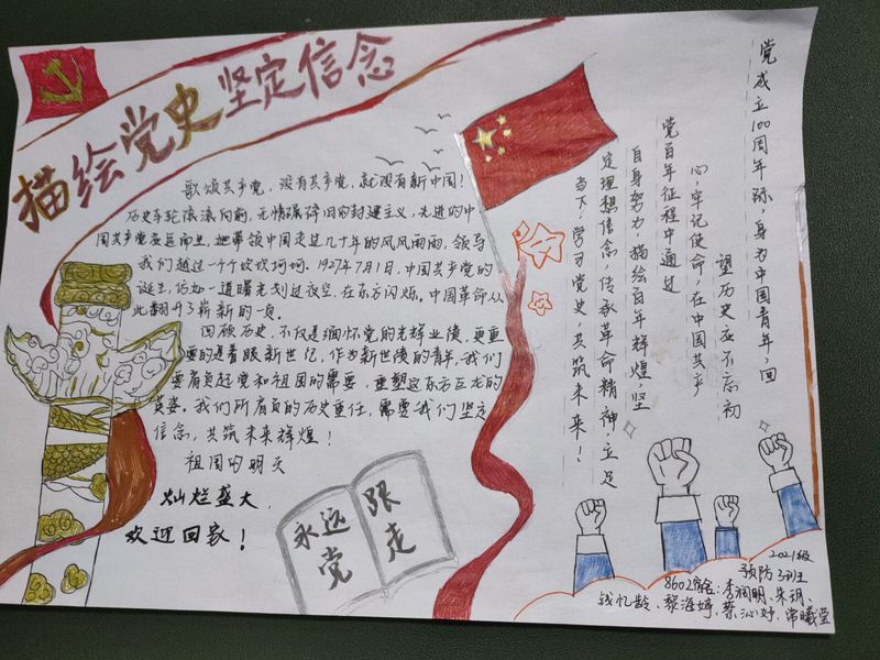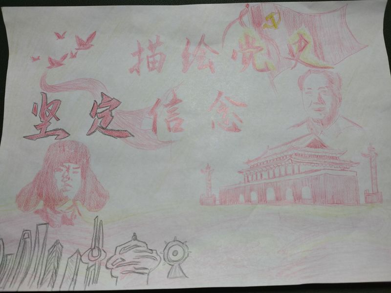 3、实践创新:进行“描绘党史,坚定信念”主题画报征集活动