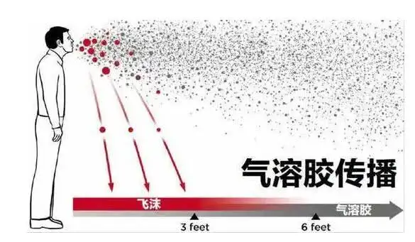 直径约为0.1微米的新冠病毒,可以附着在尘埃、飞沫上,或者是失去水分的飞沫核上,以气溶胶的形式进行“空气传播”,这就是气溶胶传播。