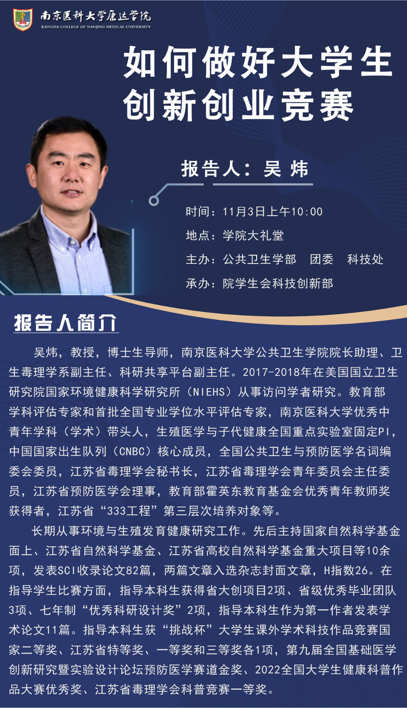 学术报告:如何做好大学生创新创业竞赛-吴炜 教授