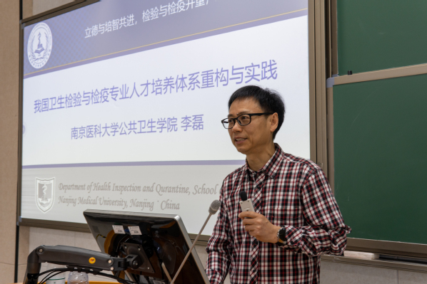李磊教授以《卫生检验与检疫人才培养体系重构与实践》为题,强调了南京医科大学卫生检验与检疫专业“立德与培智共进,检验与检疫并重,继承与创新并行”的人才培养理念,回溯专业发展历程、详细阐述专业定义、系统介绍专业学习方法与就业要求、着重讲解专业特色与发展优势。展望学生们能进一步强化综合能力,为专业发展注入新活力。