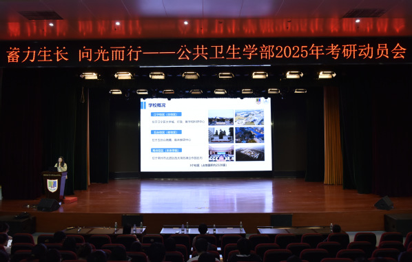 2025年4月28日下午,公共卫生学部在大礼堂召开“蓄力生长,向光而行”2025年考研动员会。特邀南京医科大学公共卫生学院副教授、学科建设与研究生管理办公室主任储海燕和南京医科大学劳动卫生与环境卫生学专业博士研究生周美玉学姐分享,公共卫生学部老师及在校学生参加。