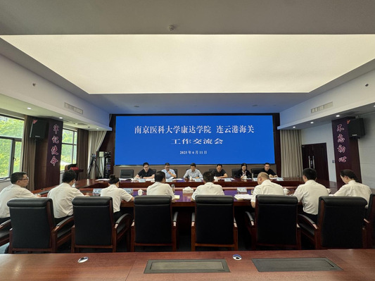 侯建军关长对院一行到访表示热烈欢迎,介绍了连云港海关的总体情况、主要职能及近年来的发展成效。张鸿来院长介绍了南京医科大学康达学院的办学历史、学科特色、人才培养及未来发展规划。